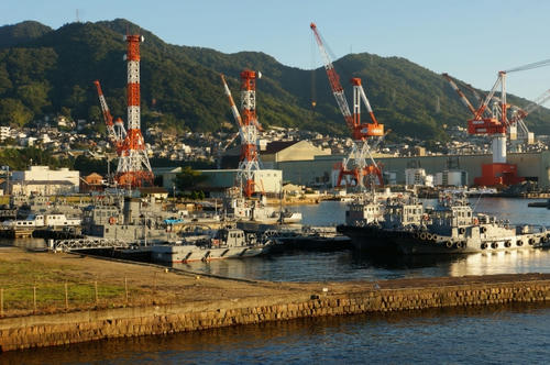 呉湾のフェリー乗り場を散策してると、すぐ近くにある呉の海上自衛隊の船がたくさん泊まっているのも見られますよ。