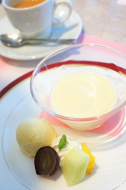 洋梨ムースとアイス&フルーツの盛り合わせ。