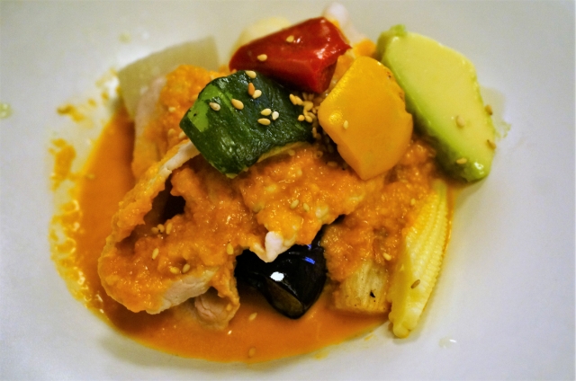 今日は豚肉です。しょうがのソースらしいので、和な感じもありつつ。