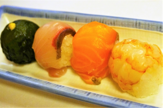 写ってませんが赤だしとてまり寿司。