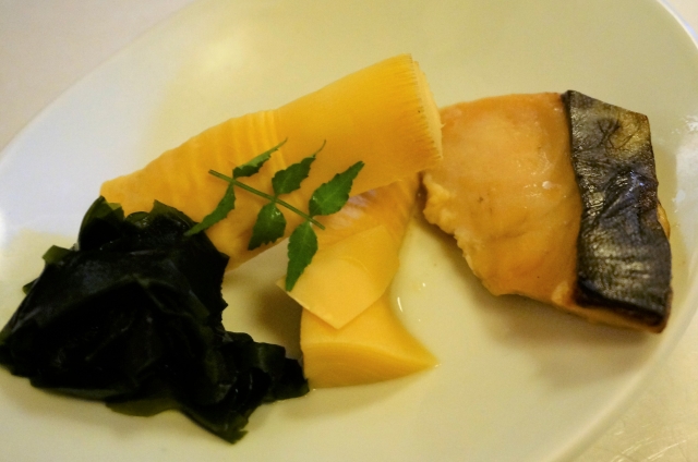 西京焼きとタケノコ煮物。