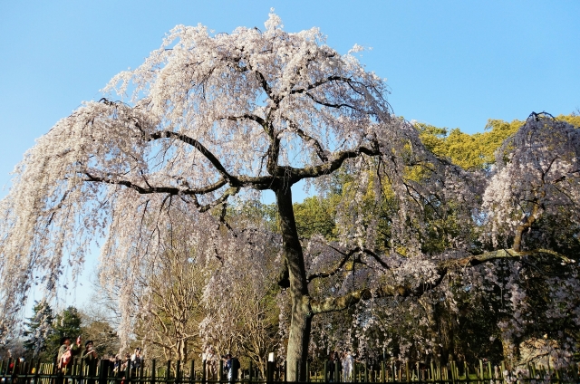 近衛邸跡地にはしだれ桜が多く、ここが一番の見どころ。