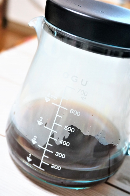うちで使ってるコーヒーメーカーのサーバは、コーヒーの量が少なくなるとコップに注ぎづらいので耐熱のガラス急須に入れ替えてたんですよ。
