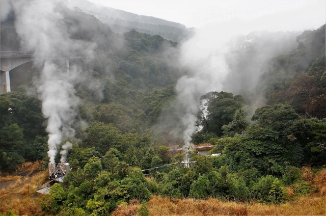 もくもくと温泉の蒸気が立ち上っていますよ。