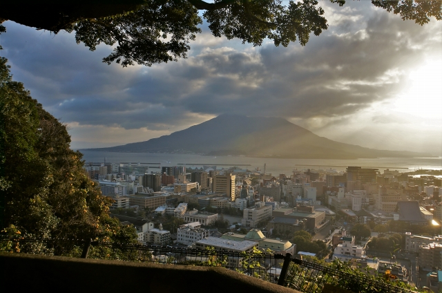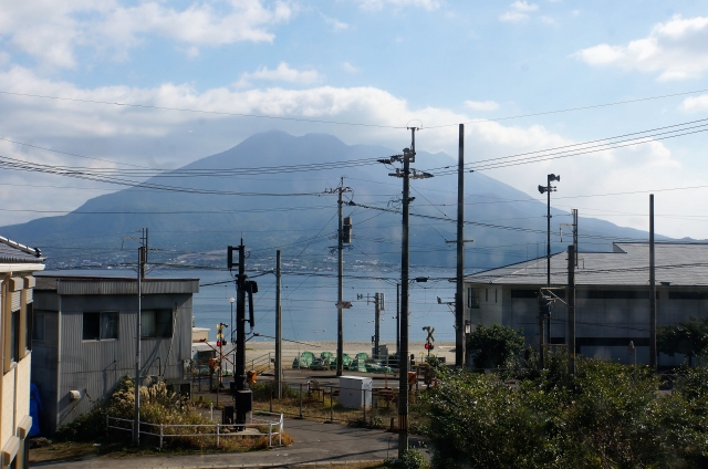 窓から桜島を見られる場所もあります。