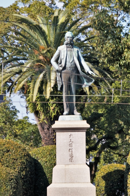 島津のお殿様の銅像。頭にハト止まってます。
