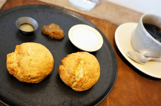 スコーンにはジャムやクリーム、はちみつなんかをお好みで合わせて頂きます。