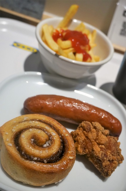 ポテト無料のクーポンあったので、大好きなソーセージとシナモンロールと、はじめての唐揚げ。