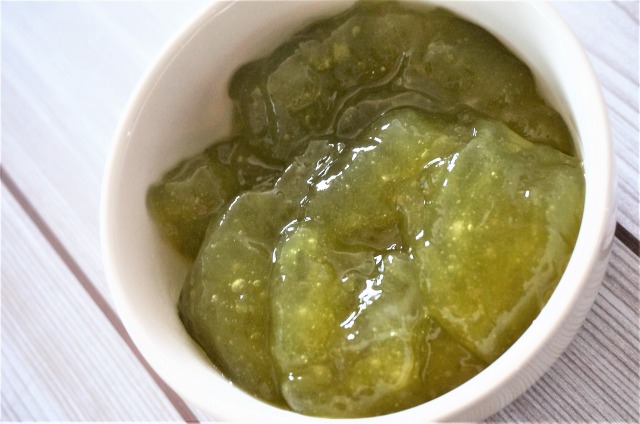 ゼリー状に固まったらスプーンで一口大にすくって、良く冷やした水の中に落とす