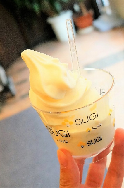 なんとなく市内をブラブラ歩いていたらスイーツが食べたくなったので杉養蜂園の店先ではちみつ入りソフトクリームを食べました。