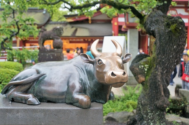 でも、境内にはたくさんの牛がいますよ。