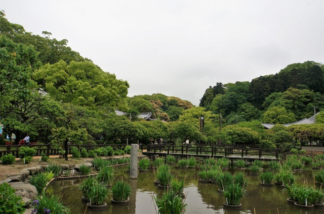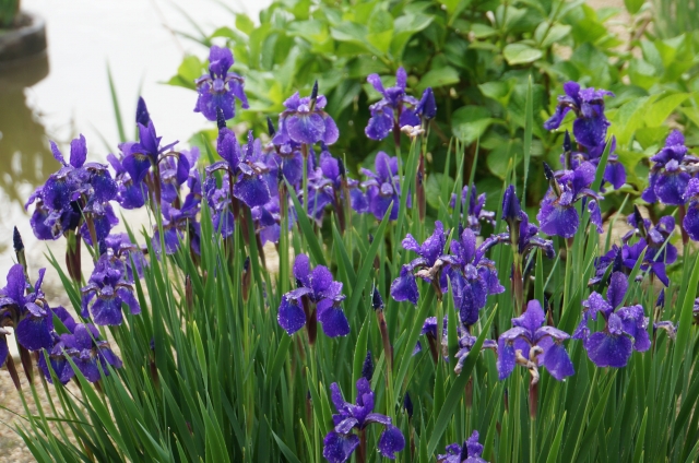 菖蒲が咲いたら綺麗な池。