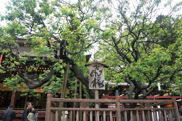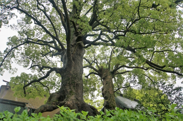 本殿の裏には仲良く2本並んだ夫婦楠。