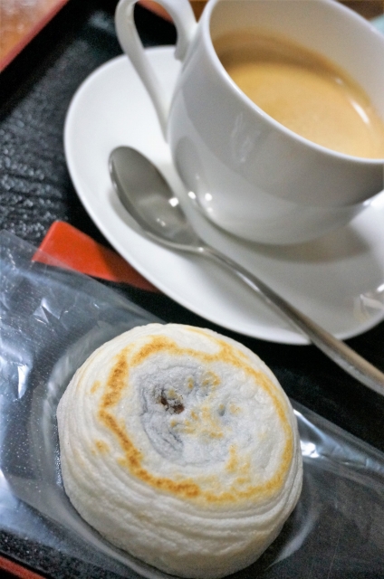 散策を終えたら「かのや」で梅ヶ枝餅とコーヒーで休憩します。