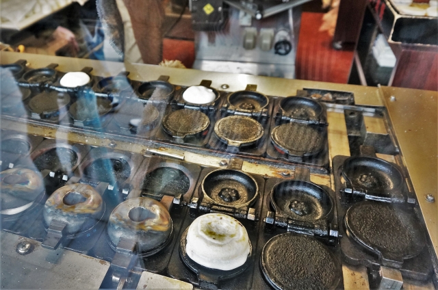 こんな風に機械で自動で焼き上げてるところもありますが、かのやさんは手焼きなんですって。
