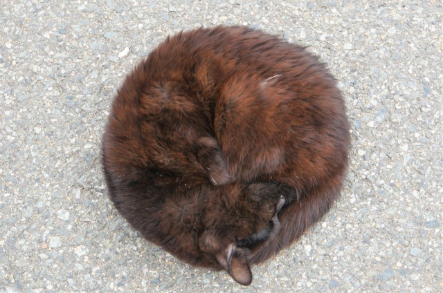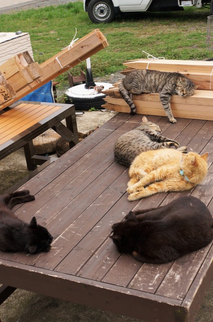猫だまりも何か所かあって、だいたい集団で寝てます。