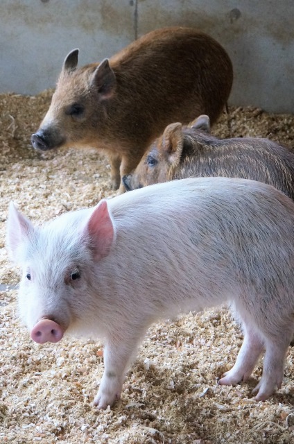奥に見えるのはイノシシ…ではなくてイノブタ!
