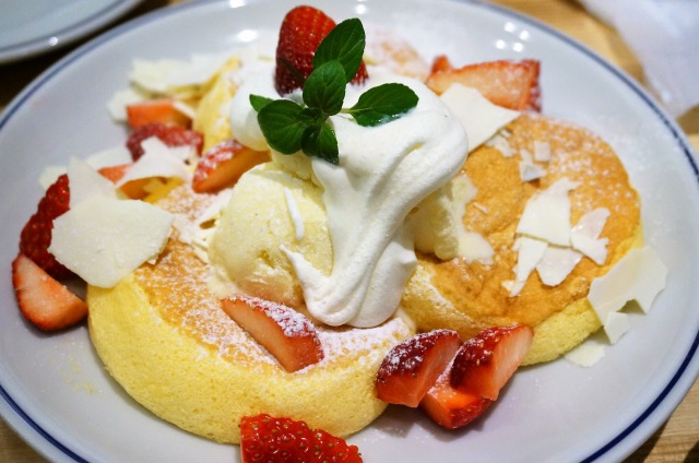 食感は軽いけど、濃厚な玉子をたっぷり感じられるパンケーキ。美味しかったです。
