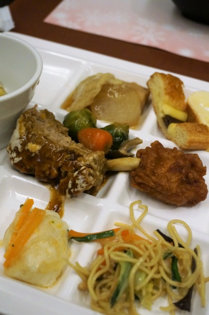 盛り方が汚くて申し訳ないですが、和洋中のおかずが色々あってこの日はフグが目玉食材でした。