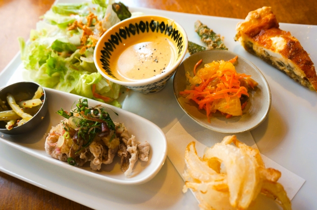 色んなピザがあるんですが、ピザセットにすると↑のボリュームたっぷりの前菜にドリンクがついてお得に食べられます。