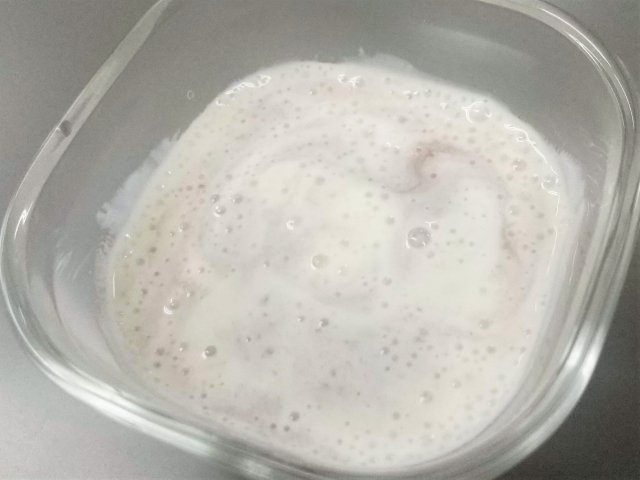 ほんとに固まるのかな?と思ってましたが、表面にぷつぷつ気泡が出てきてるので成功なんでしょう。