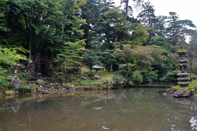 池もあるんですが、奥の方に小さな滝もあるんですよ。